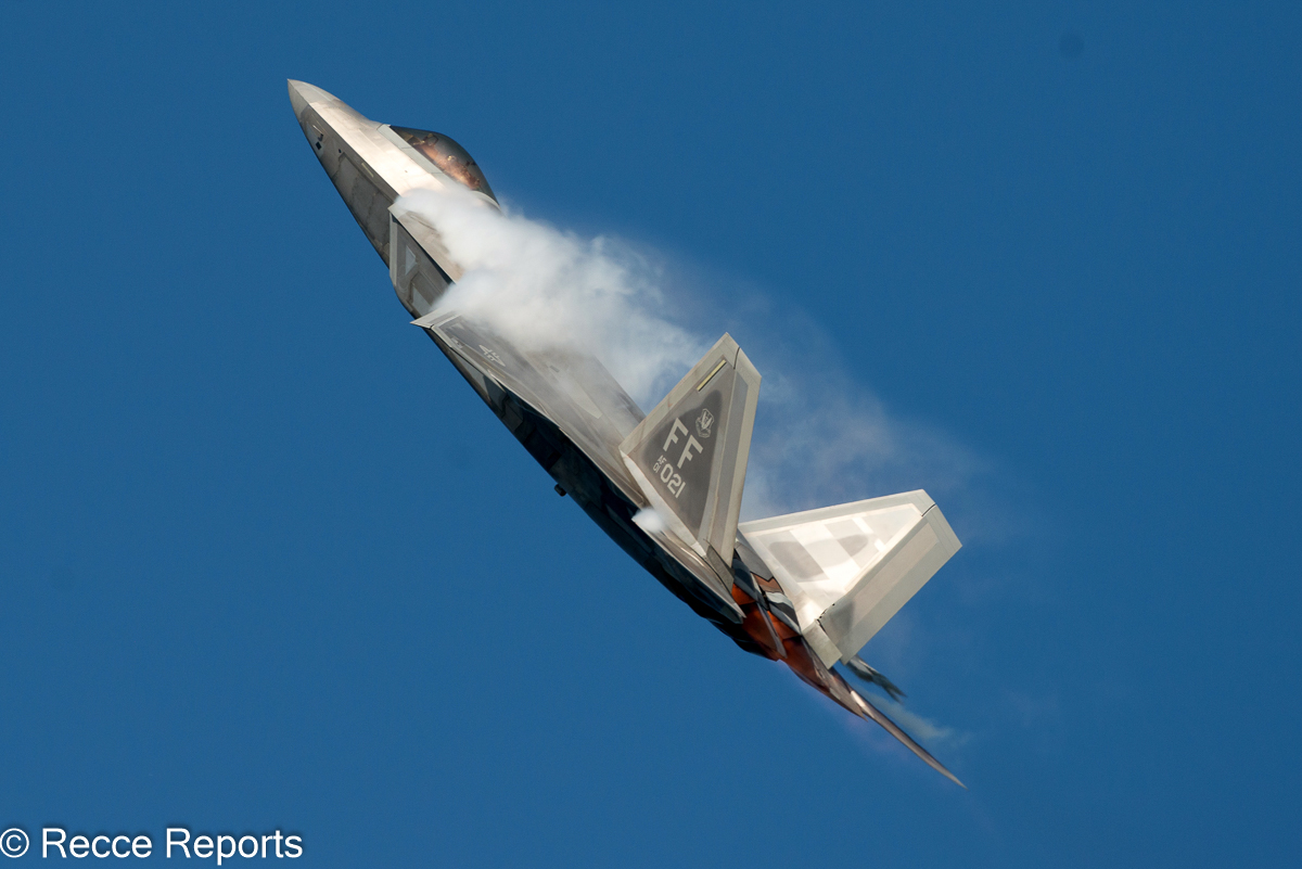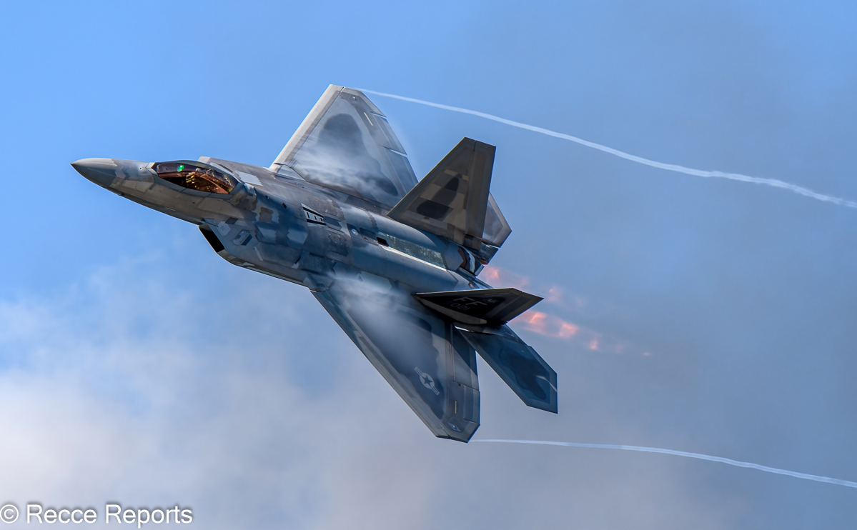 The next performer was the F/A-18F Rhino Demo Team, consisting of just a single F/A-18F. The show did not quite match that of the Canadian F-18. The highlight of the show followed: the F-22 Raptor demonstration. It was a truly magnificent 20-minute display, once again featuring explosions and fire. The men and women of “Firewalkers International Pyro” had two very busy days.