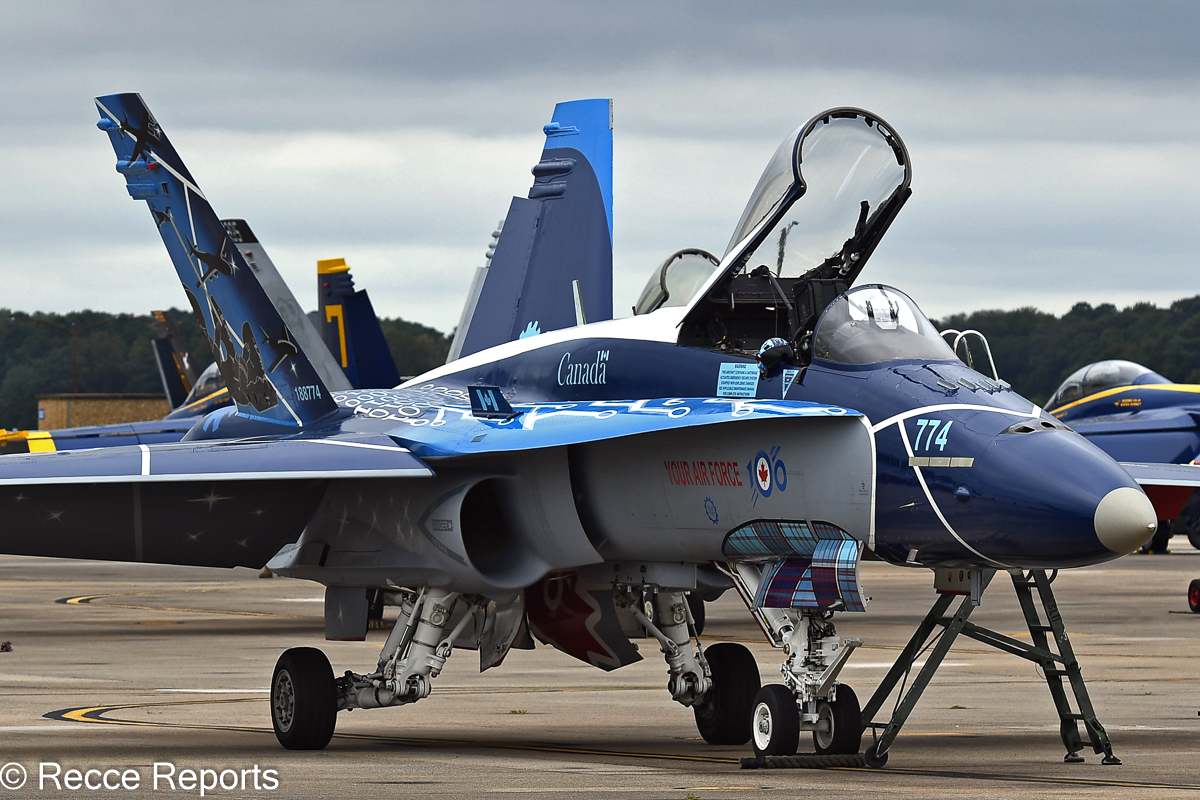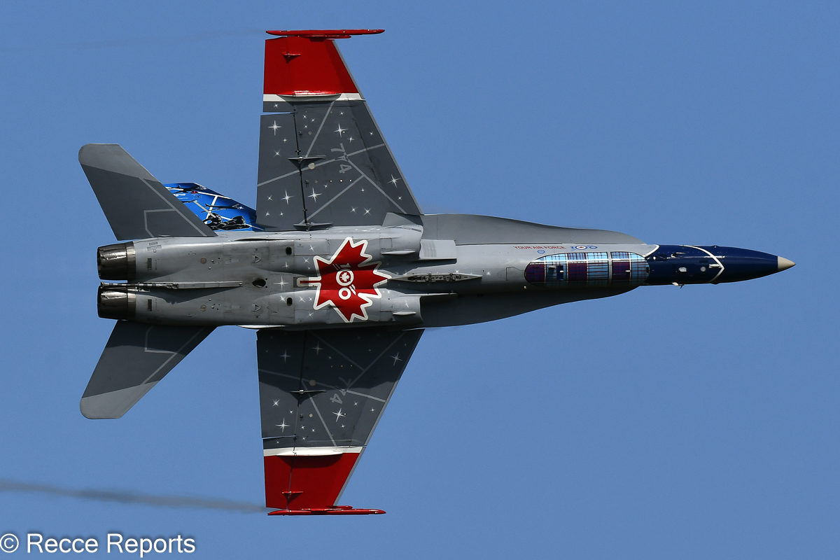 The airshow began exactly at 10 a.m. with a parachute drop by the Skydive Suffolk Demonstration Team, followed by the “Star-Spangled Banner” blaring through the loudspeakers. Around 11 a.m., the first “real” performance was flown by the blue RCAF Centennial F-18. It was a beautiful display featuring an already somewhat aging aircraft.