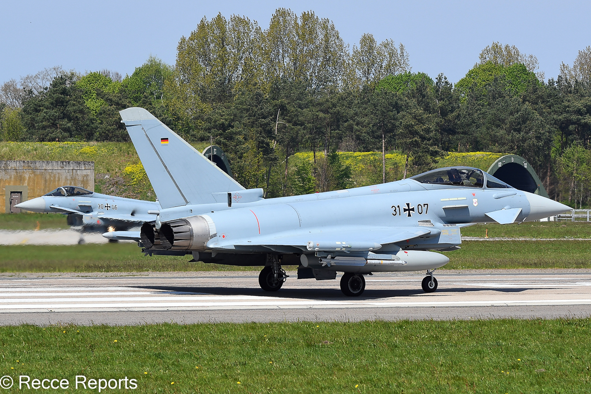 From May 5 to May 15, 2017, the Austrian Überwachungsgeschwader (Surveillance Wing) from Zeltweg was hosted by the German Taktisches Luftwaffengeschwader 71 “Richthofen” at Wittmund Air Base. The Austrian Air Force arrived with 130 soldiers and seven Eurofighter Typhoons. That is almost half of the Austrian Typhoon force, which consists of only 15 Typhoons.